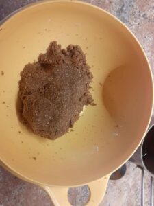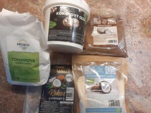 Základ logicky z kokosu, múka kokosová, tuk kokosový a cukor asi tiež kokosový. Kakao táto palma neprodukuje tak tu nie je pomoci a dáme klasické. Už som čo to zažil v pekárni tak som vedel, že to nebude chcieť držať pokope, teda doplnil som pohánkovú múku.