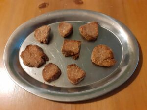 Nakoniec som to tvaroval ručne. Najbližšie skúsim pridať bielko, snáď to bude viac spojité. Po upečení tie „umelecké“ útvary držali tvar ako tak.